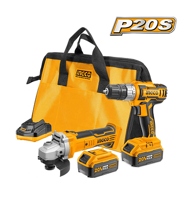 Set 2 herramientas industriales inalámbricas de 20v. Incluye 1 taladro y 1 esmeril. Con 2 baterías de 4ah y 1 cargador rápido. Para perforación y c...